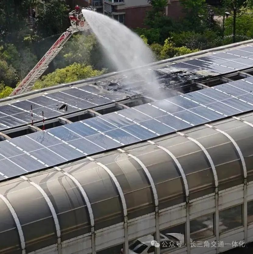 图3 2025年5月中旬并网仅3周的全国首个城市“光伏+高架隔声屏”一体化示范工程就起火燃烧