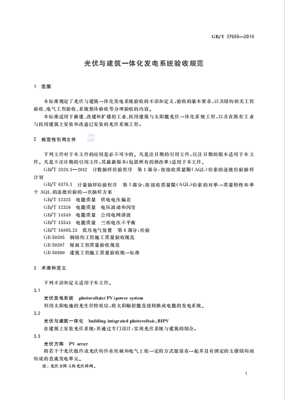 国家标准化管理委员会于2019年6月4日发布了《光伏与建筑一体化发电系统验收规范》(GB/T 37655-2019),该标准已于2020年1月1日正式实施。这一标准为中国光伏建筑一体化行业给予了权威的技术指导和验收依据。