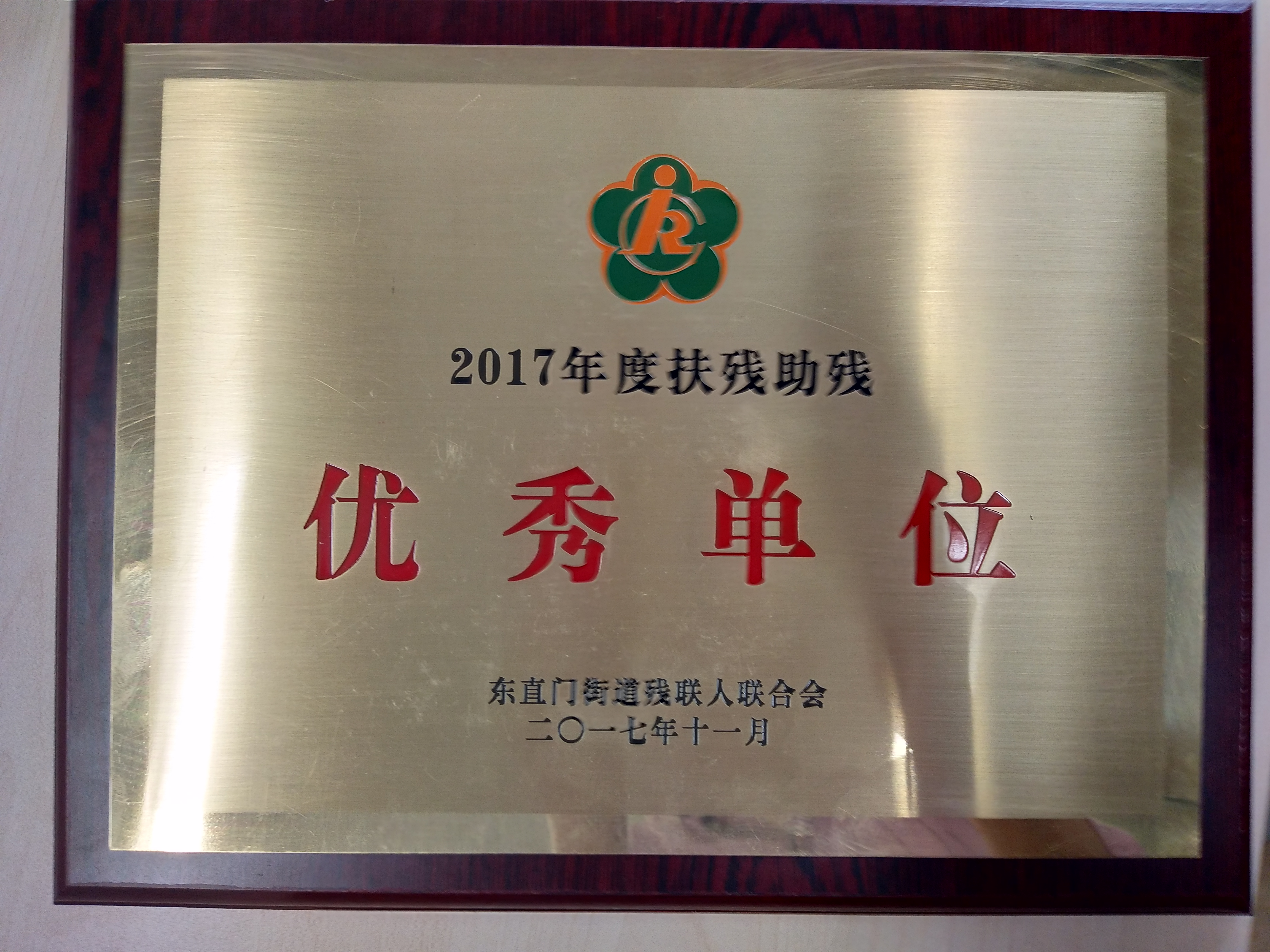 颁发单位:东城区东直门街道残联