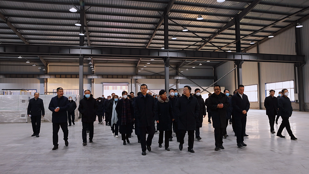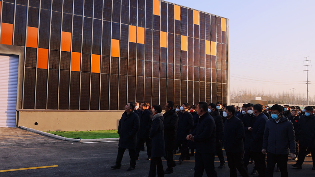 领导们先后参观了3号厂房及南侧立面“爱我中华”光伏墙。