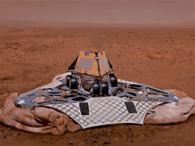 勇气号于2003年6月10日发射后,机遇号于2003年7月7日,出发历经200多天,2004年1月25日机遇号降落在火星表面(勇气号拍摄)