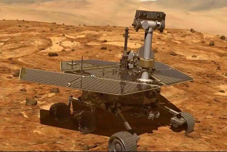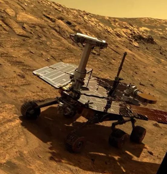 在火星上工作的机遇号探测器。