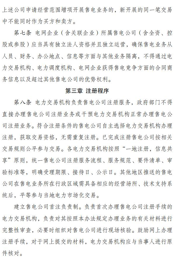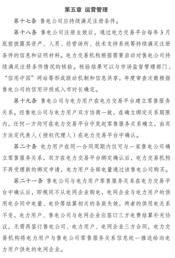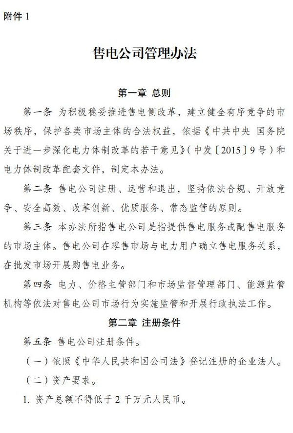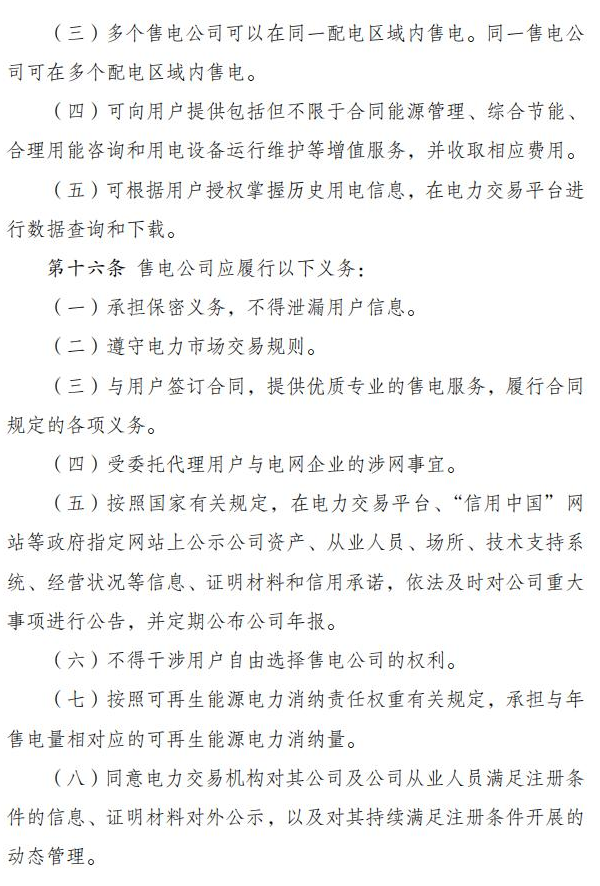 国家发改委、国家能源局近期印发《售电公司管理办法》,明确多个售电公司可以在同一配电区域内售电,同一售电公司可在多个配电区域内售电。