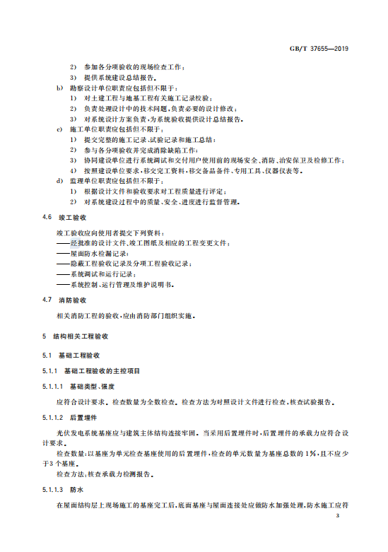 标准规定了光伏与建筑一体化发电系统验收的术语和定义,验收的基本要求,以及结构相关工程验收、电气工程验收、系统整体验收等分项验收的内容。